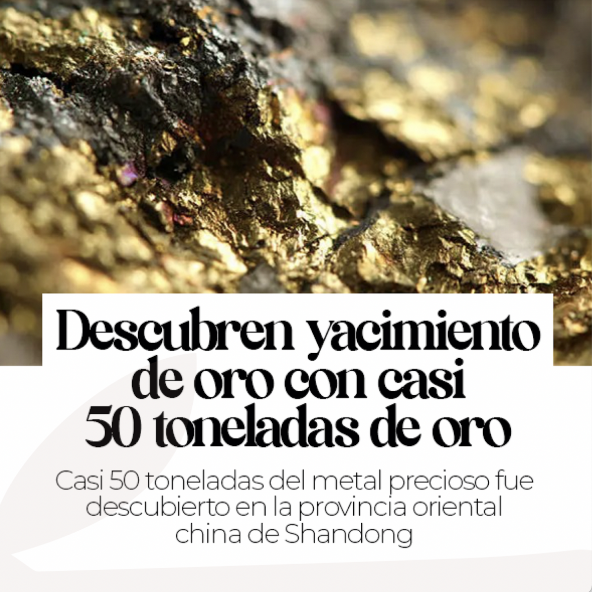 Un gran yacimiento de oro con casi 50 toneladas del metal precioso fue descubierto en la provincia oriental china de Shandong, informó el portal de noticias China News. El yacimiento es de tipo vena carbonato-pirita y se halla en la zona de desprendimiento del margen de la cuenca Jiaolai.