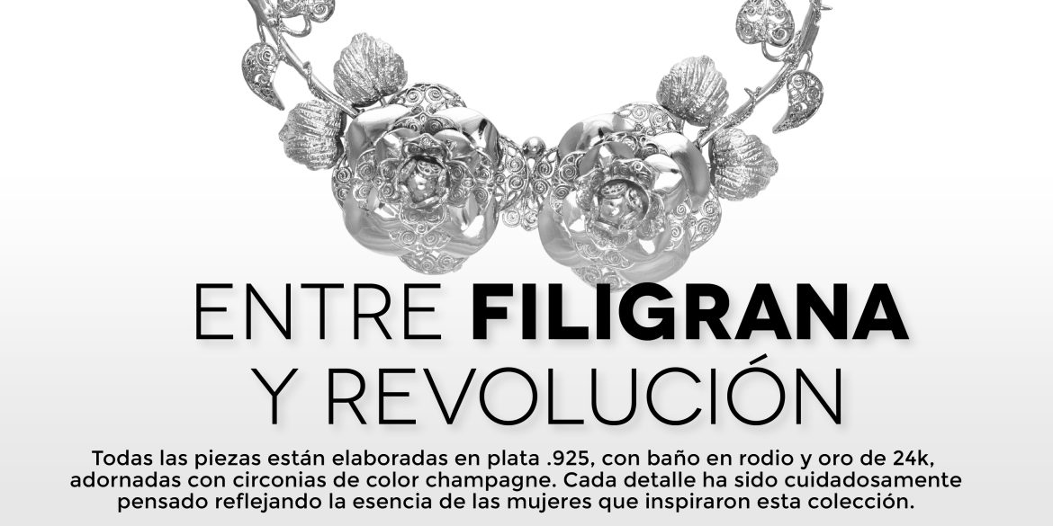 Todas las piezas están elaboradas en plata .925, con baño en rodio y oro de 24k, ador- nadas con circonias de color champagne. Cada detalle ha sido cuidadosamente pensado reflejando la esencia de las mujeres que inspiraron esta colección.